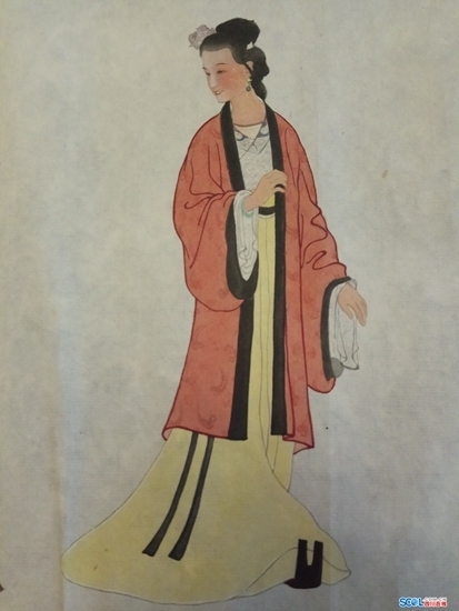 第一幅手稿只是簡(jiǎn)單地勾勒了人物線(xiàn)條,第二幅色彩稿需為人物加上服飾、發(fā)型、飾品。“每一位才女的服飾、發(fā)型都很講究,必須與當時(shí)的文化相符。”這些都需史料佐證,陳錫邦先后到國家博物館、南充絲綢廠(chǎng)等地進(jìn)行考察,為200位才女“穿衣化妝”。
